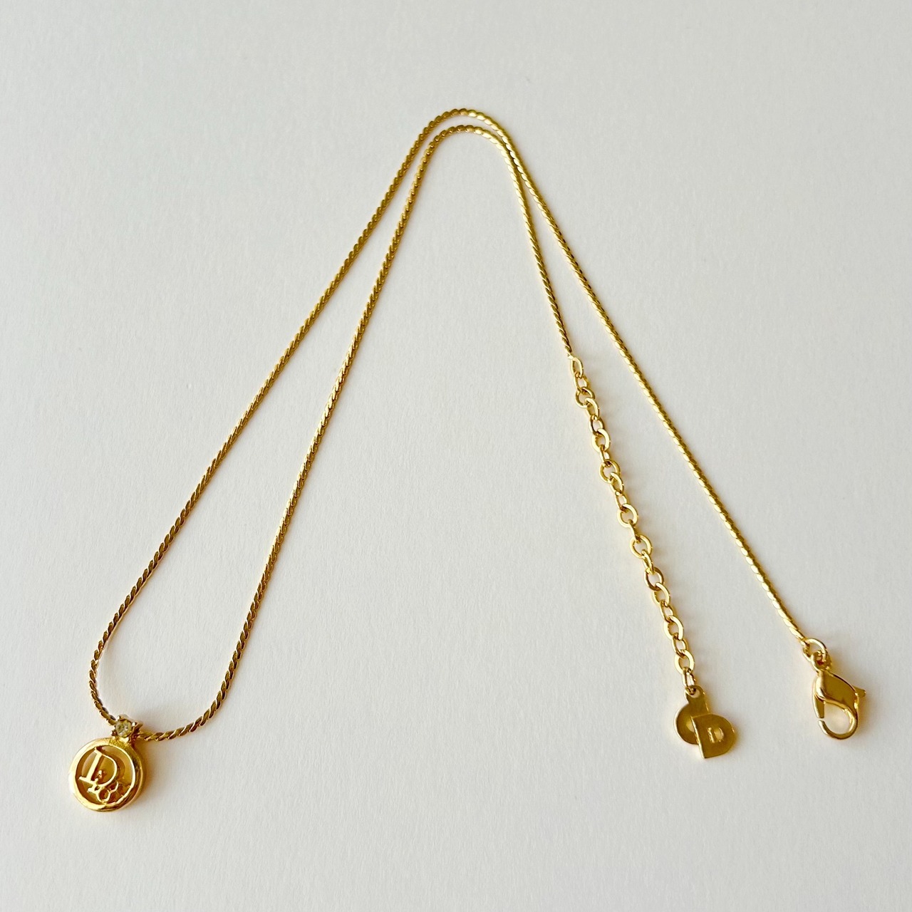 【N7080】Christian Dior logo one stone necklace/クリスチャンディオール/ネックレス