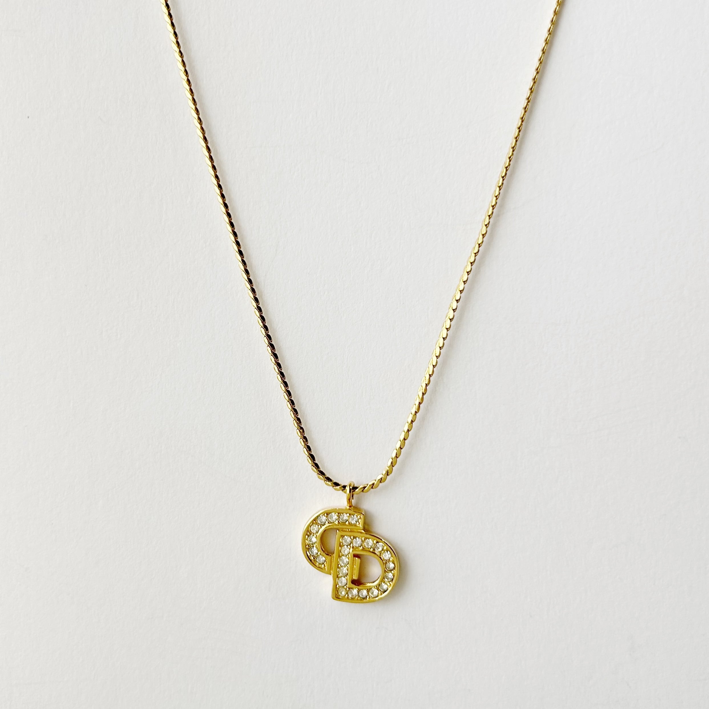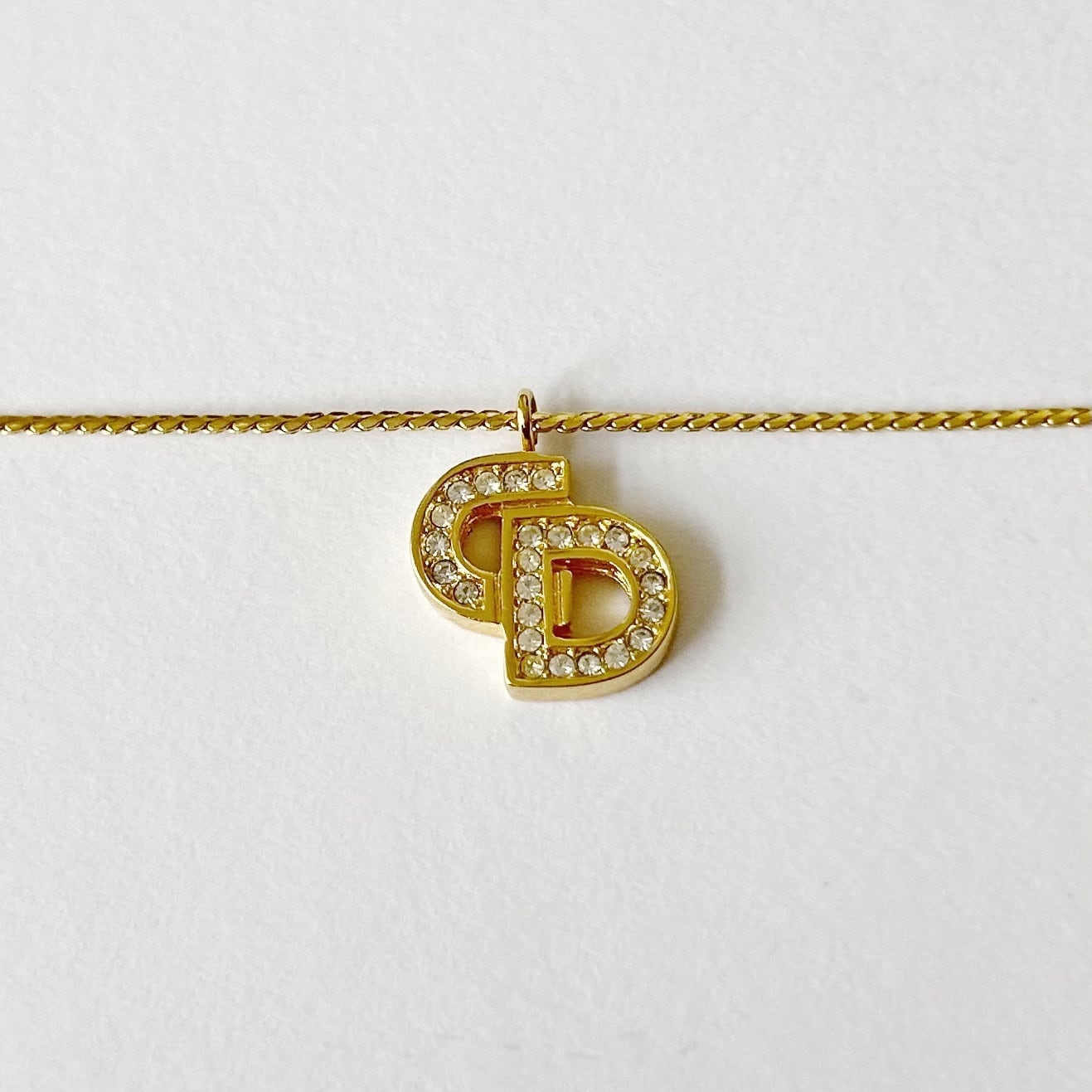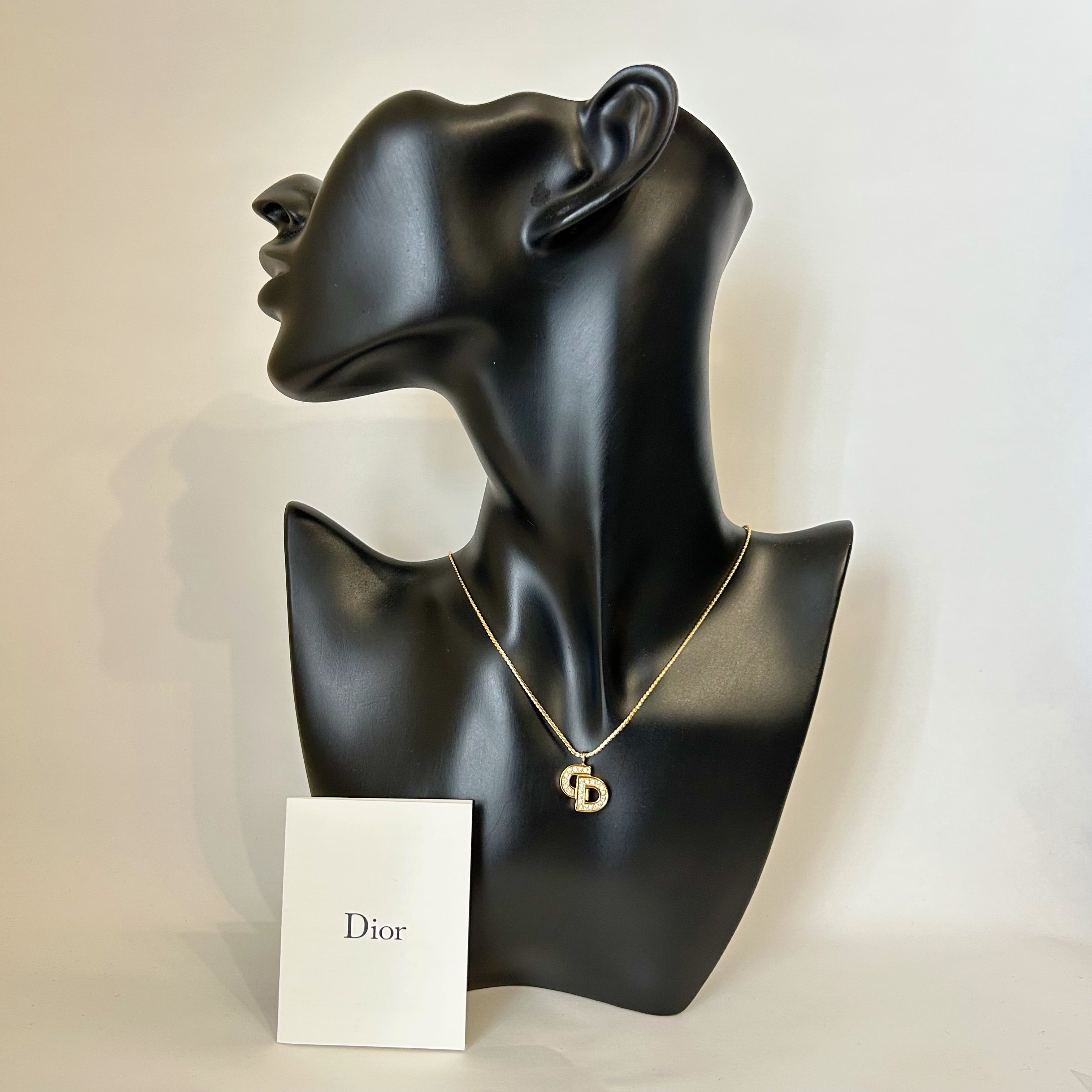 【N7167】Christian Dior logo rhinestone necklace/クリスチャンディオール/ネックレス