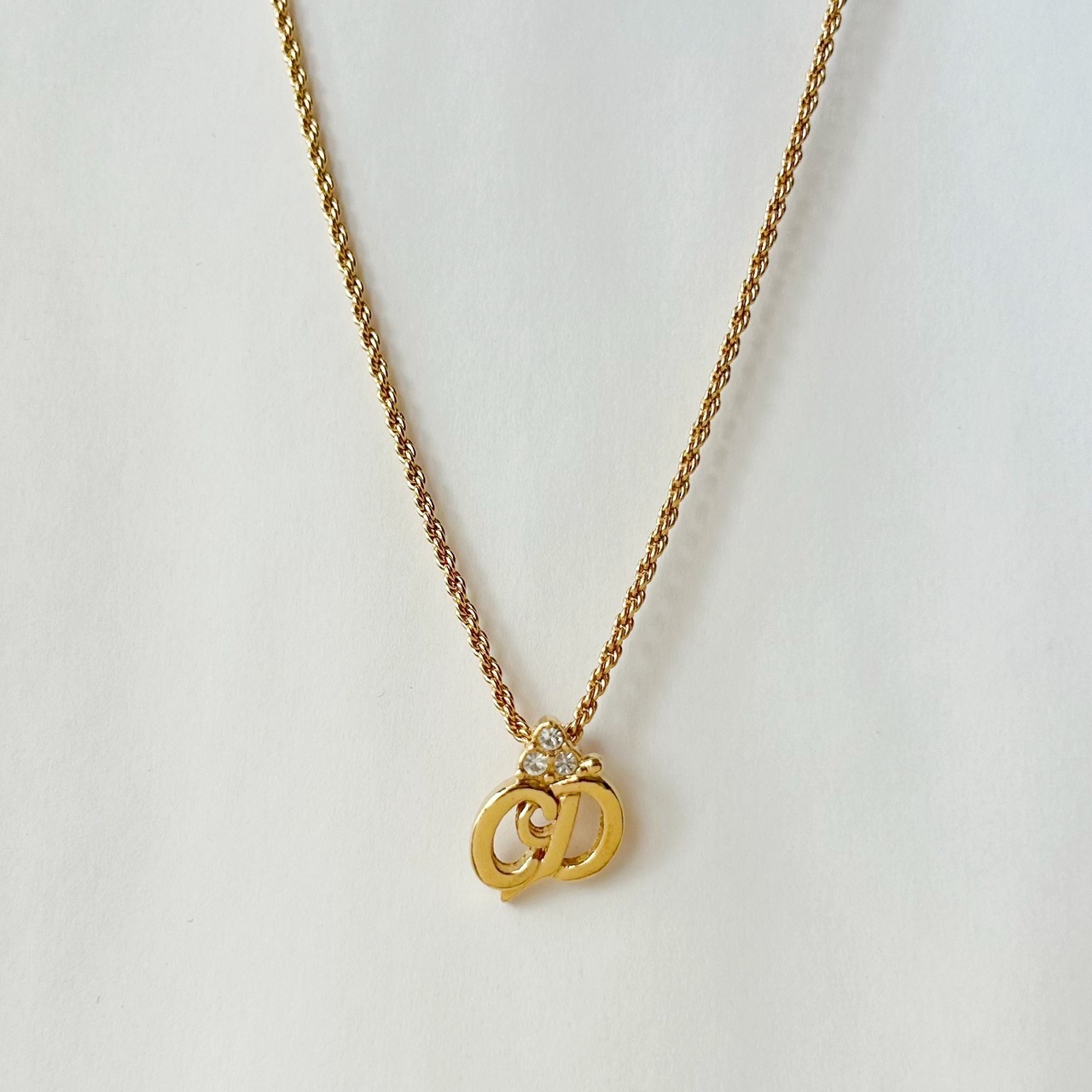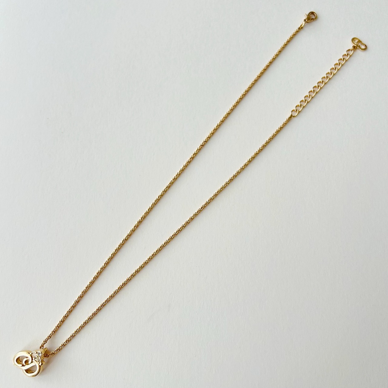 【N6286】Christian Dior 3 rhinestone logo necklace/クリスチャンディオール/ネックレス