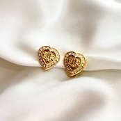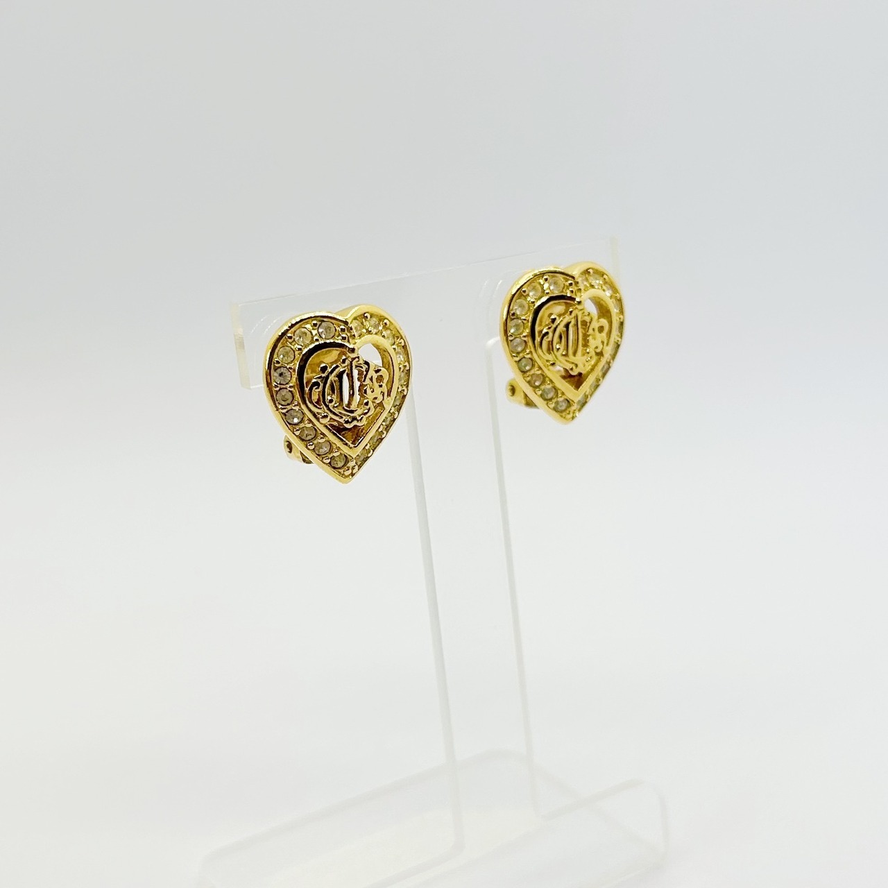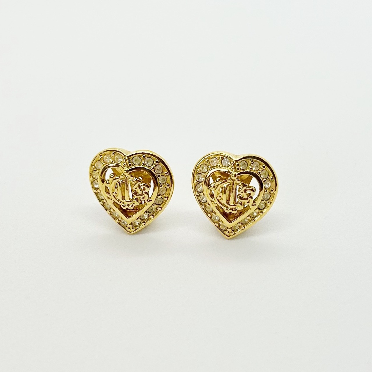 【E5439】Christian Dior logo emblem heart earrings/クリスチャンディオール/イヤリング