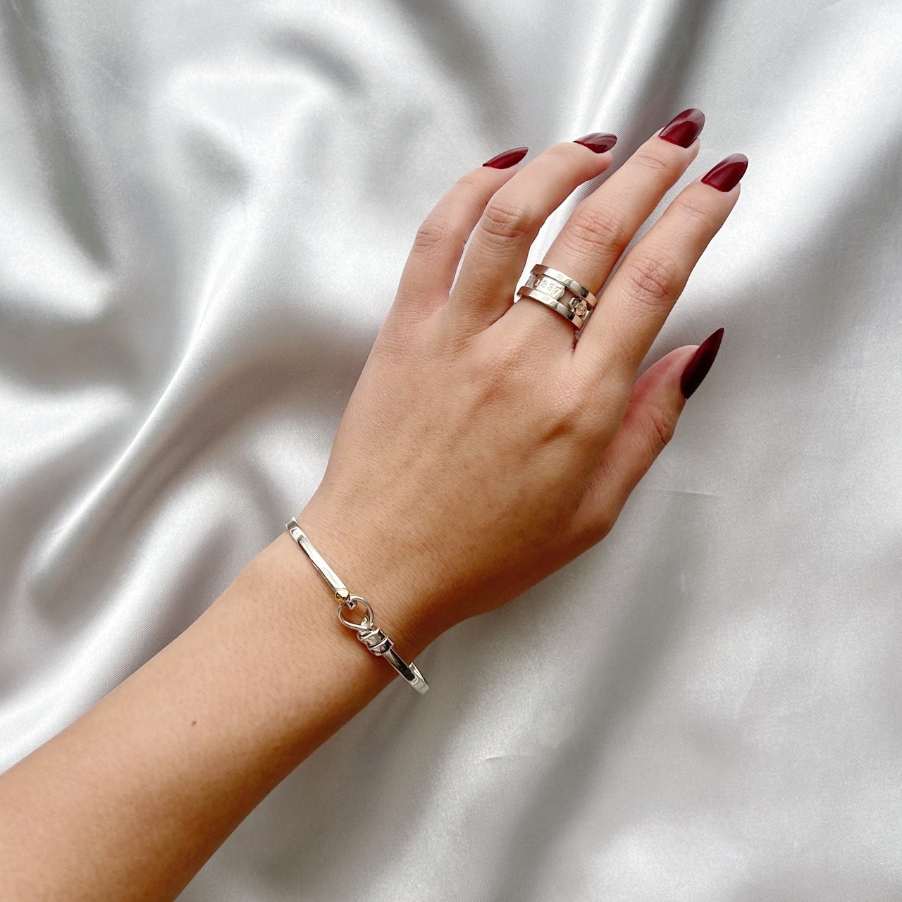 ※幅広のリングは指と接する面積が広いので、一般的な指輪のサイズよりきつく感じます。通常のサイズ感より1号から2号ほど上のサイズでご検討いただくことをおすすめします。